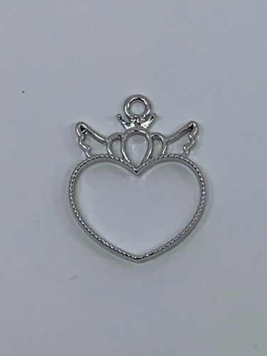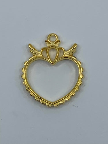 Heart with Crown & Wings Bezel Pendant